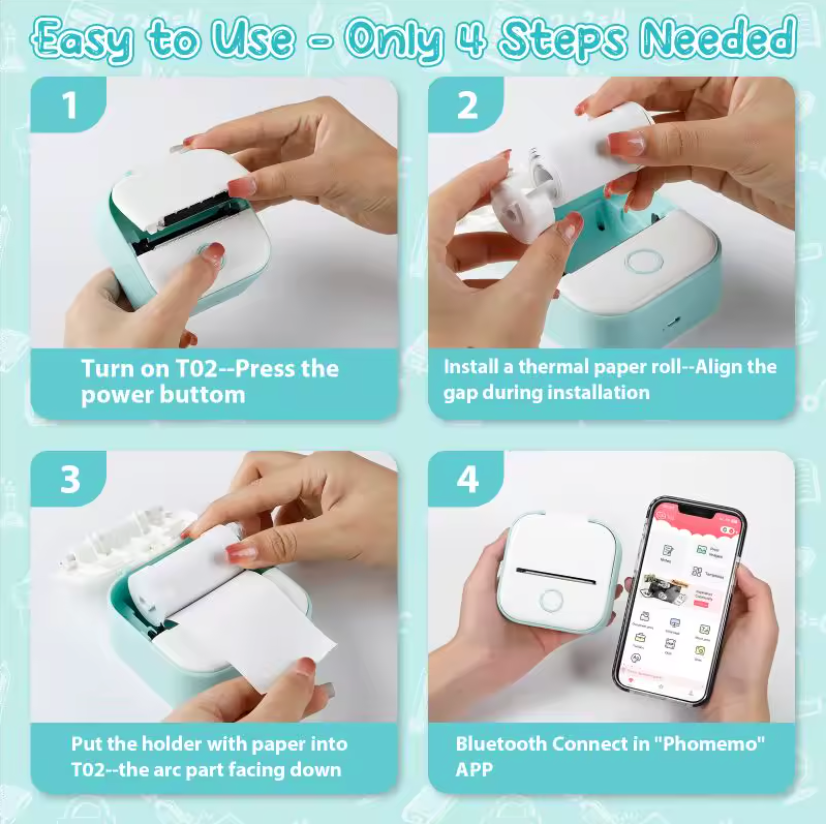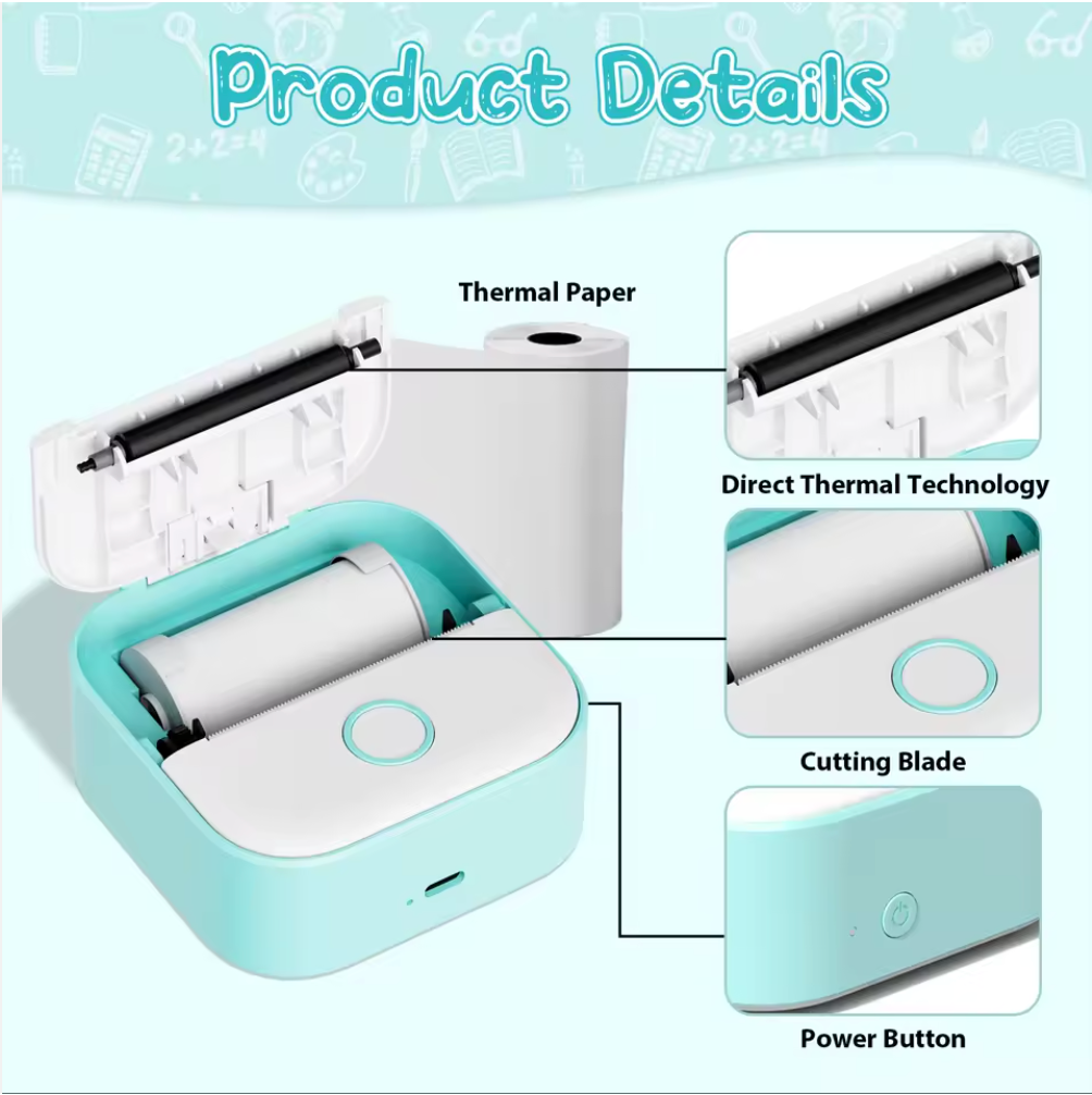 Print anytime, anywhere. This portable mini Bluetooth printer connects effortlessly to your phone, letting you instantly print photos, notes, labels, and designs—no ink, no wires. Compact, lightweight, and easy to use, it’s perfect for journaling, organizing, studying, or capturing everyday moments on the go.